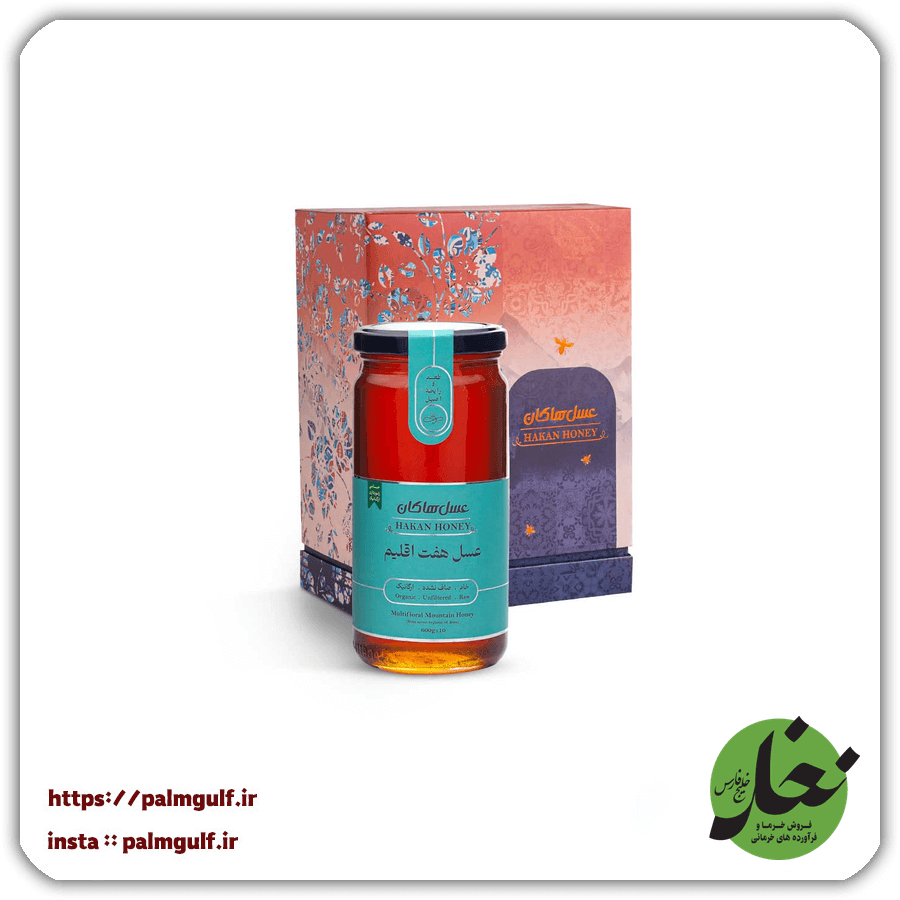 عسل هفت اقلیم هاکان ترکیبی طبیعی از هفت نوع عسل کوهستانی ایران است و به دلیل عطر و طعم دلنشین، یکی از پرفروشترین عسلهای هاکان به شمار میرود. این عسل برای مصرف روزانه، تقویت بدن، بهبود گوارش، رفع کمخونی، آرامش اعصاب و تسکین سرفه بسیار مناسب است.